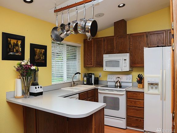 An affordable home that has it all - curb appeal, beautiful inside, awesome location and is great for entertaining. Home boasts vaulted ceiling in living room, soothing paint color, laminate flooring, most windows are double paned, certified wood burning free standing stove, beautiful landscaping front and back with concrete patio semi-enclosed in back, small office in addition to the 3 bedrooms, close to I-5 and Mill Creek.