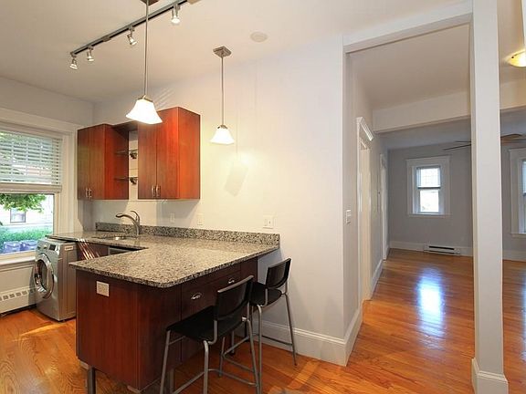 MUST SEE! Gorgeous, recently renovated first floor, 3 bedroom condo with open floor plan living room/dining area, lovely hardwood and stone accent flooring throughout. Unit has high ceilings, elegant track lighting and pendant lighting, large windows for lots of natural light and cross ventilation. New modern kitchen w/Island, granite counter tops and stainless steel appliances. Open living room/dining area space. Master bedroom with tiled ensuite bathroom! Spacious bedrooms...gorgeous bathrooms w/tiled tub/shower and fan. Washer/dryer in unit/kitchen. Heat and hot water included! Cats OK. Close to Coolidge Corner, MBTA B & C Line, or Orange Line. #66 bus to Harvard Square, Cambridge, or Coolidge Corner. Assigned to the Devotion School approximately .5 miles away. See Virtual Tour Video and Floor Plan attached. Recently rented until August 31, 2021 for $2,700/M. Call or email office for showings!