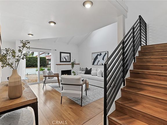 Coastal. Modern. Quiet. Complete. These are just a few select words that best describe 514 Alondra. Located in the quiet, well-maintained La Cuesta Racquet Club, this attached single-family home is a must-see for anyone looking for something upgraded and close to the best that Huntington Beach has to offer. Entering the home, you’ll find vaulted ceilings on the first floor with custom skylights and a loft that make this floorplan feel bright, open, and sizeable. Each room has laminate flooring that creates effortless flow throughout the home. The modern-style kitchen includes a high-end induction cooktop, stainless steel appliances, and a large breakfast bar. And for larger gatherings, the dining room is conveniently located off the open kitchen. But you’ll enjoy hosting even more through the dual pane sliding glass doors, just outside, seated amongst the garden on the large, private back patio. Back inside, gather around the fireplace in the living room, or stream your favorite show because this HOA includes high-speed internet and cable. Following the custom railing upstairs, you’ll first come to a well-sized, open loft space, perfect for a family gaming area or reading nook. Up to you! Off the hallway, there are two bedrooms and a shared updated full bath. Finally, making your way to the back of the home you’ll be at peace in your primary suite with vaulted ceilings and plantation shutters. Off the bedroom is a large upgraded ensuite with dual sinks and a walk-in shower. Other highlights of this home include: 2 car garage with a parking pad in front, a community clubhouse available for rent, a tennis court, and a large greenbelt in the center of the community.