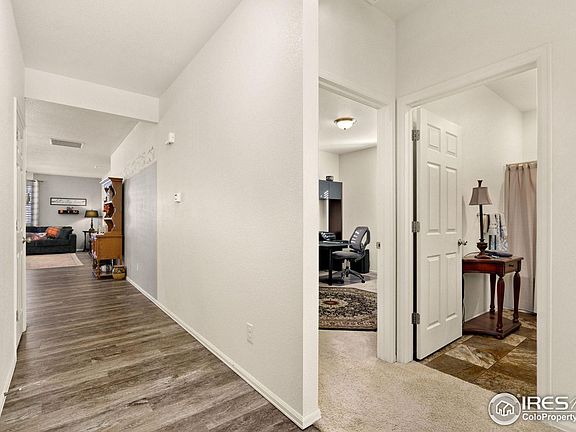 Sweet ranch style home in new condition in Tailholt! Like a new home without the new home price. 3 beds and 2 1/2 baths on the main floor. LVP floors , espresso kitchen cabinets , granite countertops with upgraded pendant light fixtures, new high end microwave and dishwasher and a beautiful LG refrigerator. The large walk in pantry is a fantastic feature ! Main floor laundry room with extra space for storage. The home also comes with custom plantation shutters in the main living area. The primary suite is roomy with a nicely appointed 3/4 bath, double vanity and walk in closet. The basement was professionally finished with an incredible recreation room that could be used for multiple purposes. Plenty of storage space for future expansion. The seller added a nice deck on the back to enjoy the outdoors and 2 cherry trees that should produce fruit for you this year. A wide green space gives you privacy and quiet. A spacious 3 car garage rounds out this home to meet everyone's needs. Metro district pays for non-potable water.