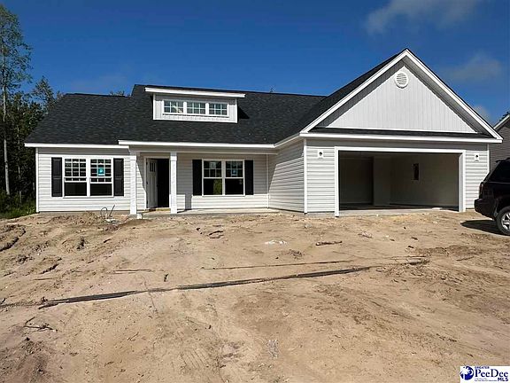 Nestled in the peaceful countryside of Loris, this cozy 3-bedroom, 2-bathroom home offers a comfortable living space perfect for relaxation and gatherings. Inside, you’ll find a spacious open layout with durable LVP flooring throughout and a well-appointed kitchen featuring quartz countertops and soft-close cabinets. The master suite boasts ample his and her closets, double vanities, and a lovely shower. Outside, enjoy the screened back porch and welcoming front porch, and no HOA's. With 10-foot ceilings and thoughtful touches like stainless steel appliances and a nice-sized pantry, this home combines rural charm with modern comfort. *Pictures are from a previous built home with the same floor plan. Outside colors and selection colors/style may be different*. Not a shared driveway.
