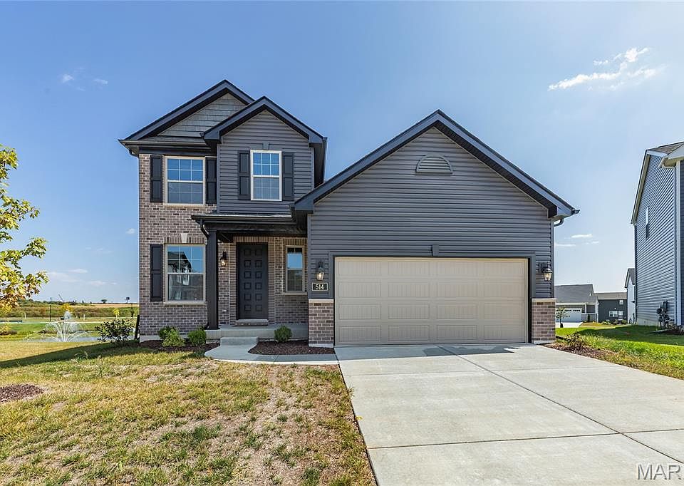 Gorgeous newly built (Dec 2024) Lombardo home, located in sought after Streets of Caledonia subdivision, on a premium cul-de-sac & backing to a water view! Why wait for new construction when you can enjoy a spacious 4 Bed/2.5 Bath with all the upgrades! Main floor features beautiful wide-plank engineered hardwood floors throughout, along with 9' ceilings & plenty of windows for an open airy feel. Be wowed by the gourmet kitchen featuring 42" cabinets, Quartz counters, custom tile backsplash, large kitchen island, deep sink & walk-in pantry. Easily entertain with the open floor plan & living room anchored by an impressive floor to ceiling stone gas FP. Step out to the composite deck with a peaceful water view for morning coffee or evening grilling. The rest of the main floor offers a powder room, drop zone from the garage & room for a main floor laundry, office or additional storage. Head upstairs to an open loft area & 4 beds along with a separate upstairs laundry room. Primary offers a large en-suite with walk-in shower, dual vanities & walk-in closet. The 3 secondary beds are good sized & share a hall bath. There is an upgraded zoned HVAC. Lower level is ready for finishing touches with full bath rough-in & egress window. Subdivision amenities: community pool with beach walk-in, playground, bocce ball area, pickleball court, 30 acres of landscaped common grounds featuring fountained lakes, walking trails, clubhouse with full kitchen, entertainment space, fitness center.