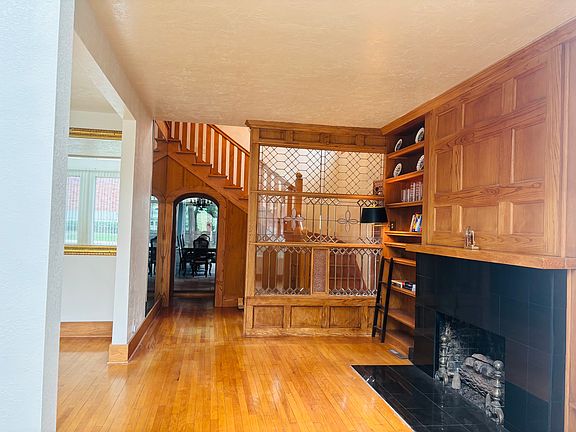 Original hardwood floors, arched doorways, and elegant architectural details