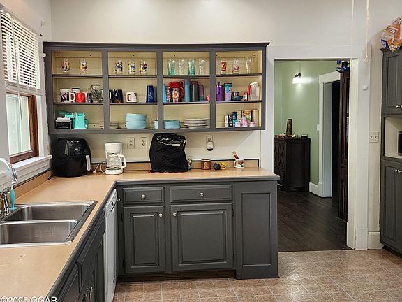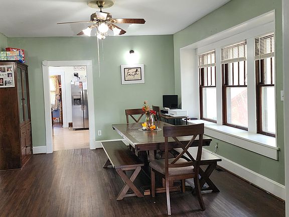 There is room for the whole family! This brick home features six bedrooms/two bathrooms, situated on 0.6 acres. It has a large living room with a decorative fireplace that is separated from the dining room by lovely working pocket doors, and the dining room has a nice built-in hutch. The large kitchen features a utility room and a sun room (unheated) located off the back side. There are three bedrooms downstairs and three bedrooms upstairs. The house has a partially unfinished basement with interior and exterior access. Seller says the Ecobee 3 light stays, Govee Smart dehumidifier max model H7151, and 2m Ecobee smart thermostates stay. It also has a brick one-car garage plus a storage shed.