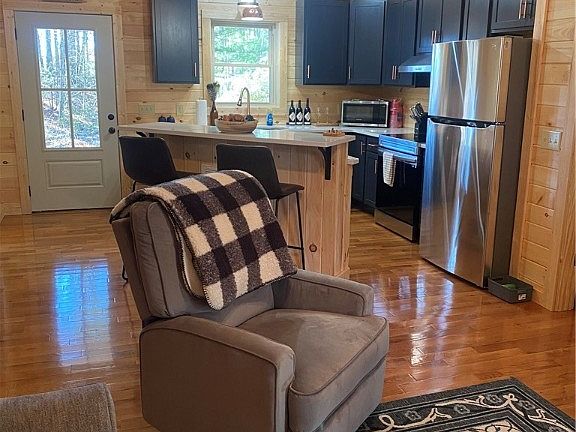 Come enjoy this 2 bd, 2 ba cozy home just 9 minutes from the Blue Ridge Parkway, Freeborne's Restaurant and 14 minutes to New River access on highway 221. Gorgeous hardwood floors. Tile shower with glass doors in masterbath. Nice kitchen and sitting / living room area and laundry area. Front and back porch are covered. Vinyl siding for easy maintenance. This has been a second home and very well maintained.