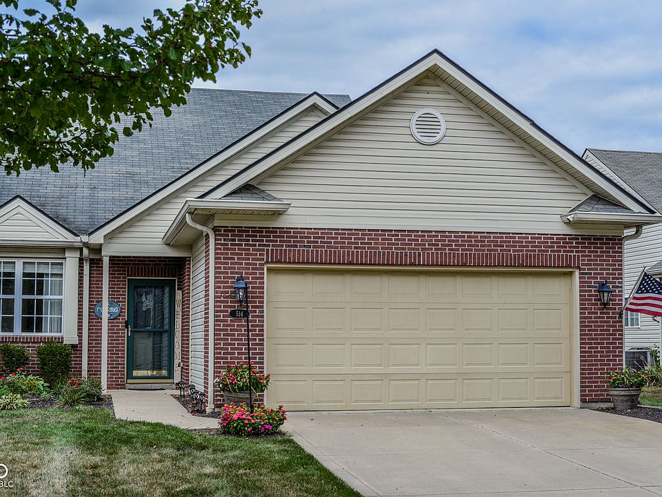 Fabulous paired patio ranch backs up to small nature preserve. Large patio, nice landscaping and mature trees to enjoy the view. Fabulous floor plan with sunroom offering great views of back yard as well. Eat-In-Kitchen offers generous cabinets and seamless counters as well as stainless appliances and tile backsplash. Great room boasts a gas fireplace and dining area. Gorgeous hardwood floors span every room but the owner's bedroom. Large laundry room with sink, counters, cabinets and appliances. Large bedrooms with lit fans. One-Year home warranty included.
