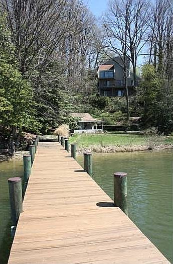 A peaceful drive down a wooded road in the coveted community of North Shore will lead you to discover Park Creek and this amazing WATERFRONT home nestled in serenity. Your personal oasis boasts a private 135 foot deep water pier with a boat lift, 8 foot MLW, multiple decks, cabana house, fenced section of backyard, and more! Upon arrival it is clear this home is exceptional from its contemporary exterior that sets the tone for what awaits inside including sun-bathed open spaces, vaulted beamed ceilings, gleaming hardwood floors, and a beautiful view of Park Creek that create a warm and decadent atmosphere. Prepare gourmet meals in the recently renovated chef-inspired kitchen appointed with stainless steel appliances, stylish soft close white cabinetry, sparkling quartz counters, island with breakfast bar, pantries, and wood-look ceramic tile. The dining room is the perfect place to entertain family and friends situated off the kitchen and with deck access. Relax and unwind in the living room with sweeping nature views out of multiple sliding glass doors and ambiance from a cozy wood burning fireplace. Travel to the first upper level where gorgeous views carry on into your primary bedroom suite highlighted by a custom walk-in closet with built-ins, and a private balcony overlooking Park Creek. Continue to the en-suite primary bath showcasing dual vanities and sizable shower. A loft, large bedroom, and full bath conclude the upper levels. The finished lower level provides ample additional space including a family room with wood burning fireplace, third bedroom, full bath, and storage room. The family room also offers a walkout to the brick patio and fenced section of backyard. The property also features a 12 foot foundation wall, lower foundation walls, storage shed, wrap around side porch, front brick patio, and ample parking. This amazing waterfront property truly embodies the quintessential nautical lifestyle with the convenience of commuter distance to Annapolis, Baltimore, and D.C., as well as 20 minutes to BWI Airport. Don't miss out on owning a piece of perfection! Enjoy the numerous amenities provided by the community including a marina with boat ramp, beach, park, playground and events. Voluntary HOA. Property Updates: 50 foot dock extension, staining of all decks, heat pump, water heater, brick patio, primary walk-in closet, water treatment system, kitchen renovation, sliding glass door, sliding glass door side windows, foundation walls, deck replacements and new supports, interior paint, street level wall and landscaping, boat house paint, bedroom carpets, well, exterior siding, hardwood flooring, lower level tile, and more!