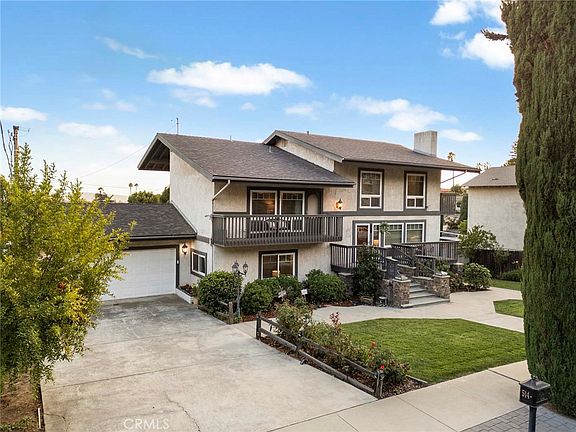 Picturesque property, located on a quiet cul-de-sac in North Glendora is for sale for the first time in 38 years. Great curb appeal with a grand entry is this spacious & remodeled tri level home. Offering 4 bedrooms, 2.5 baths and 3,562 sq ft of living space, on an expansive 12,156 sq ft lot. Upon entering the front door you are welcomed by a cozy living room with gleaming hardwood floors & a wood burning fireplace. Cabinets & counter tops galore you have in the Gally Kitchen, double ovens, a 5 burner Induction electric cook top & stainless steel appliances, water filter system under the sink & a breakfast nook. A large dining area opens to a covered deck that is 41 X 12 made of Treks, where you can enjoy the city light view while you BBQ in a natural gas grill & entertain year around. You can oversee the expansive yard with plenty of room for children to play, prefect multi purpose activity pad for Pickleball, basketball etc. or to add a pool & spa. The Primary bedroom has a wall of closets & remodeled bathroom with a walk in shower, soaker bathtub, large mirror & stone countertops. Separated for privacy are 3 additional bedrooms & another remodeled bathroom with a large walk-in shower and nice vanity. There is another room that would be great for an office, sewing room or another bedroom.The large family room is located on the lower level with custom built-in bookcases & a very useful cupboard for more storage. Step down to another large room approx.400 sq ft that can be used as a home gym, offices, den or even turned into a theater. You can access the backyard from this level through the French doors to a concrete patio area with fruit trees, lush grass & block wall fence. Additional features include Centralized alarm & fire system, double pane windows, recessed lighting, crown moldings, upgraded electrical, newer carpets, ceiling fans & a 2-car oversize garage. There is a-paved driveway for 5 additional cars. This home features newly installed energy efficient solar panels & a plug for EV charging station that is paid for. Class A fireproof, composition roof was installed in 2020. Located in the coveted Glendora School District, Sandburg Jr. High, LaFetra Elementary School & close to St Lucy's Priory, Azusa Pacific University & Citrus College. You can enjoy the close proximity to the Glendora Village for great shopping, restaurants, Library, Finkbiner Park, bus line and Gold line. Priced to sell, this property won't last & is ready for the next family.