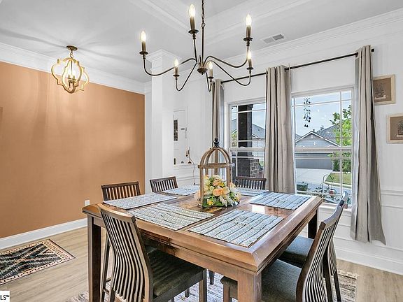Enjoy the ease of one-level living in this all-brick home featuring three spacious bedrooms and two full bathrooms. The open layout seamlessly connects the living, dining, and kitchen areas for both comfort and functionality. A welcoming front porch sets the tone as you step into a light-filled interior with neutral colors and luxury vinyl plank flooring. The dining area, accented by a trey ceiling, flows into the kitchen, where you’ll find white cabinetry, granite countertops, a subway tile backsplash, stainless steel appliances gas range, deep sink, and a large island with seating. Just off the kitchen, the generous living room offers easy access to the covered back patio, expanding your options for entertaining or simply enjoying a quiet evening outdoors. The laundry/mudroom provides direct access to the two-car garage, adding everyday convenience. Down the hallway are two secondary bedrooms with ample closet space, sharing a well-appointed full bath. The private primary suite sits at the rear of the home and features a trey ceiling, oversized walk-in closet, linen storage, dual sinks, and a tiled walk-in shower. Located minutes from Simpsonville, Mauldin, Greenville, and the trails and playground at Conestee Park, this home offers both comfort and convenience. Schedule your showing today and see how easily this could become your next home. This home qualifies for 100% financing. Call me for details.