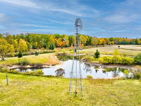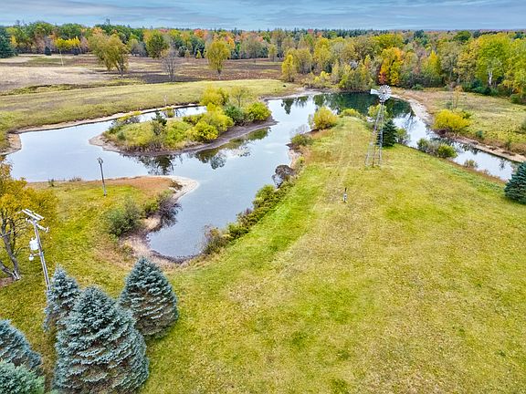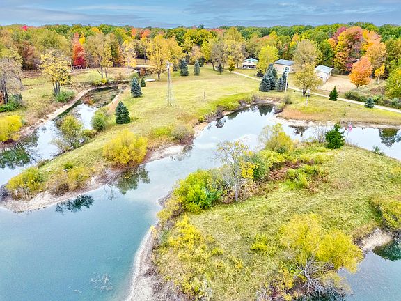 This exceptional 80 acre property has been family enjoyed for 33 years! The ponds have a windmill well pump and aerators to maintain water levels.The open pasture area and 50 acres of hardwoods, swales and native grasses make this a deer and turkey haven. The pole barns are 30 x 40 w/ 30 x 10 covered porch, 56 x 36 and 80 x 20, all have electric, water and cement floors. 6 RV sites all set for your family and friends to enjoy. The North property line borders the Pere Marquette State Trail for year round recreation.