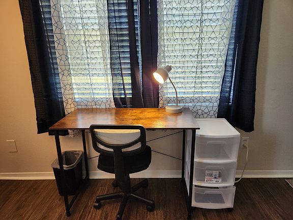This 2bed/2bath offers updated interior with a split layout. There is 1bed & 1 bath on one of the home, split by the kitchen in the center and the other 1bed & 1 bath on the other end. Making it perfect for a family or people sharing the home yet still keeping privacy. There is also a small office built on in the garage with HVAC in it.