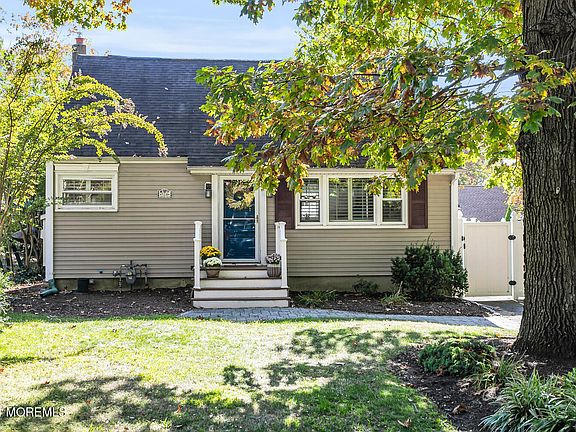 This charming, updated Cape in Shark River Hills features an open floor plan perfect for dining and entertaining. The living room is equipped with a gas fireplace to cozy up to on cold nights. It boasts two fully renovated bathrooms and an updated kitchen with stainless steel appliances, quartz countertops, subway tile backsplash, and a large center island. Custom wood window shutters in kitchen, dining and living rooms. The first floor includes a bedroom or office with a full bath. The upstairs contains two bedrooms with skylights that add natural light, a full bath, and ample extra storage. A full basement completes the home. Plus a fully fenced in yard with paver patio and privacy.