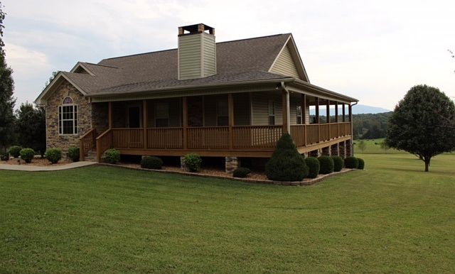 Immaculate Ranch style home located on 5 beautiful acres with a gorgeous view of the mountains. Relax on your covered porch and enjoy the view. 3 bedroom, 2 bath, open floor plan with beautiful stacked stone fireplace, hardwood, jetted tub, 2 car detached garage with workshop area and window unit A.C.