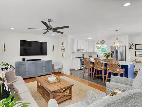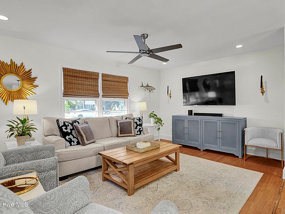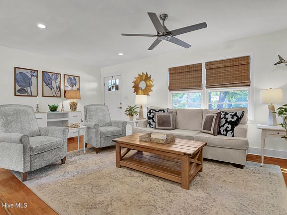 Beautifully renovated home nestled on a nearly half-acre lot in the highly desirable Long Leaf Acres area of Wilmington. Perfectly positioned just minutes from Wrightsville Beach and Mayfaire Town Center, this property offers a prime location that captures the best of coastal living with exceptional privacy and no HOA. Inside, the thoughtfully updated interior blends coastal style with everyday functionality. The open-concept design features a bright kitchen with new custom cabinetry, quartz countertops, and a large island that flows seamlessly into the living area—ideal for both daily living and entertaining. High-quality finishes continue throughout, including solid wood doors, new trim, fresh paint, and updated lighting. Both bathrooms have been fully renovated, enhancing the bright, coastal feel of the home. Step outside to an expansive new deck overlooking a large fenced yard with new garden boxes and an outdoor shower—perfect for rinsing off after boat or beach days. With peaceful surroundings and nearby walking paths leading to Wrightsville Beach, this home combines style and comfort in one of the most convenient locations in Wilmington.