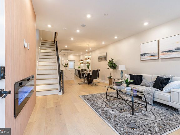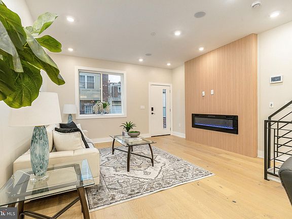 This modern new construction comes with a 10 year tax abatement and 1 year builder's warranty. Welcome to your dream home in the heart of Dickinson Narrows! This stunning new construction residence offers 4 bedrooms, 3 full bathrooms, and a perfect blend of modern luxury and thoughtful design. Step inside to find an open-concept layout featuring beautiful hardwood floors, custom railings, and built-in speakers in both the living room and primary suite. The spacious living area also showcases an electric fireplace, creating the perfect ambiance for relaxing or entertaining. The chef’s kitchen is a showstopper — complete with a large island featuring a quartz waterfall countertop, built-in microwave, and wine cooler. Above the gas range you will find a pot filler, and an impressive tiled backsplash. The Samsung stainless steel appliances, abundant storage, elegant floating shelves, and two-tone shaker cabinetry make this kitchen both stylish and functional. From the kitchen, step out to your private backyard — an ideal space for grilling or enjoying quiet evenings outdoors. The finished basement offers incredible flexibility, featuring a full bedroom, full bathroom, and a bonus room perfect for a home office, gym, or playroom. Upstairs, the second floor includes two spacious bedrooms with generous closets and a beautifully designed bathroom with a walk-in shower and built-in bench. At the top of the third floor, you’ll find a convenient wet bar with a second wine cooler — perfect for entertaining or preparing drinks before heading up to the rooftop deck. The primary suite is a private retreat, offering a spacious bedroom with built-in speakers, dual closets, and a spa-inspired bathroom complete with a soaking tub, double vanity, and expansive walk-in shower. Enjoy panoramic views of the city and neighborhood from your roof deck, the perfect spot for relaxing or hosting gatherings. Additional features include a white brick exterior, security system with exterior cameras, and high-end finishes throughout. Located in desirable Dickinson Narrows, this home combines modern comfort, convenience, and timeless style — just minutes from neighborhood favorites, parks, and everything South Philadelphia has to offer.