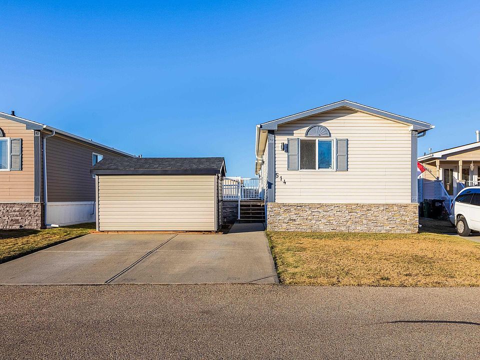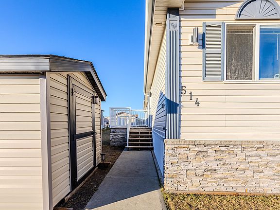 Welcome to 514 Maple Wood Cres NW! Every detail shines in this modern, move-in-ready home that blends style, comfort, and function. Out front, enjoy a welcoming porch and large storage shed for all your extra gear. Inside, the bright open layout features a spacious living room with a stunning brick feature wall and built-in TV. The kitchen impresses with two-tone cabinetry, gold hardware, stainless steel appliances, and a skylight that fills the space with beautiful natural light all day long. Off the dining area, patio doors open to an expansive deck and large partially fenced yard—perfect for outdoor dining and gatherings. The primary suite includes a built-in Bose sound system, spacious walk-in closet, and a beautiful ensuite with a walk-in shower. Toward the front of the home, you’ll find two additional bedrooms and a stylish main bathroom with eye-catching penny tile. A convenient central laundry room completes this incredible home—modern, functional, and completely turnkey!