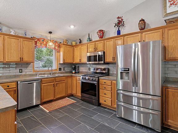 Beautiful Dundas home that backs directly up to Millstone Park and offers 3 bedrooms, 2 bathrooms, and a 3-car heated garage. The spacious kitchen is a standout featuring stainless steel appliances and a walk-in pantry, while the open floor plan is enhanced by vaulted ceilings and a fireplace in the living room. Huge primary bedroom with tons of closet space. Hardwood floors run throughout the main level, and the lower level includes both a family room and an amusement room, providing plenty of additional living space. Step out from the dining area onto the expansive deck overlooking backyard which includes a storage shed and views of the park, with direct access to bike trails, city and country parks, and open green space. Just 6 minutes from the heart of Northfield yet embraces the small town charm!