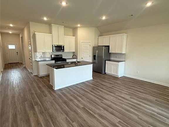 In a quaint neighborhood just minutes to the U of A and I-49, this brick 4-bedroom, 2-bath home is perfect for both everyday living and entertaining. This bright and open floor plan seamlessly connects the living room, dining room and kitchen. The kitchen is equipped with a large island, quartz countertops, stainless steel appliances and a spacious walk-in pantry, offering plenty of storage. Throughout the home, you'll find luxury vinyl plank flooring that adds style and durability. The primary bedroom includes an ensuite bathroom with quartz countertops, double sinks, an oversized shower and a generous walk-in closet. The additional 3 bedrooms feature ceiling fans as well as spacious walk-in closets. Come see this beautiful home for yourself and experience the perfect blend of luxury, comfort, and convenience in this friendly community! Its move-in ready and waiting for you!