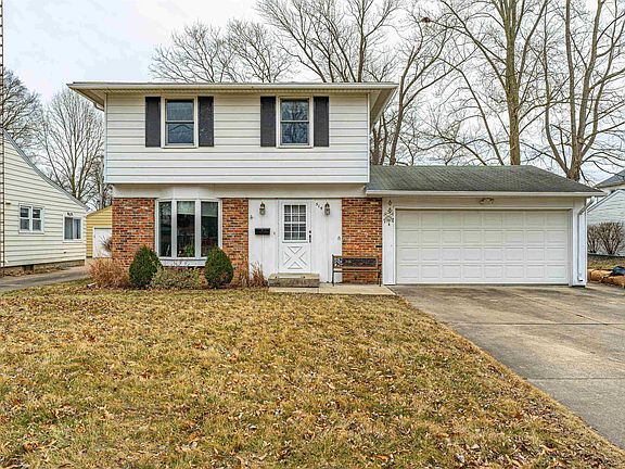 Owned and loved by the same family for over 50 years, this wonderful 3 bedroom, 1.5 bath brick/aluminum/wood sided traditional style two story home gives all the right vibes! Main floor welcomes you home with an inviting foyer host to hardwood flooring, comfortable front facing living room (currently used as a formal dining room) with a bay window, updated equipped eat-in kitchen with tasteful cabinetry, solid surface countertops, and an adjacent hall tiled half bath, as well as a roomy sunken rear facing family room that features a sliding door exterior access point. Upstairs, you will find three bedrooms -- all with hardwood flooring -- and a full hall bath. The usable basement features a finished rec room, large mechanical/laundry room area with an operable shower, and great storage space. Property also features a two car attached garage, large rear patio, Andersen windows, six panel interior doors, and a rear storage shed. Seller is willing to leave gas grill, patio furniture with umbrella, fridge/freezer in the attached garage, workbench, and all window treatments. Dining room furniture negotiable if needed/desired. Choice property that is bound to move quickly!