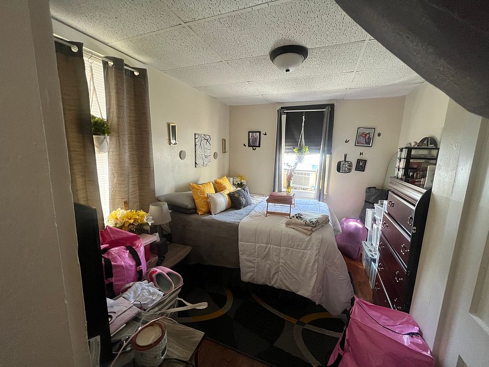 Recently renovated, hard wood floor, quiet second floor rear apartment with a small balcony and private entrance.