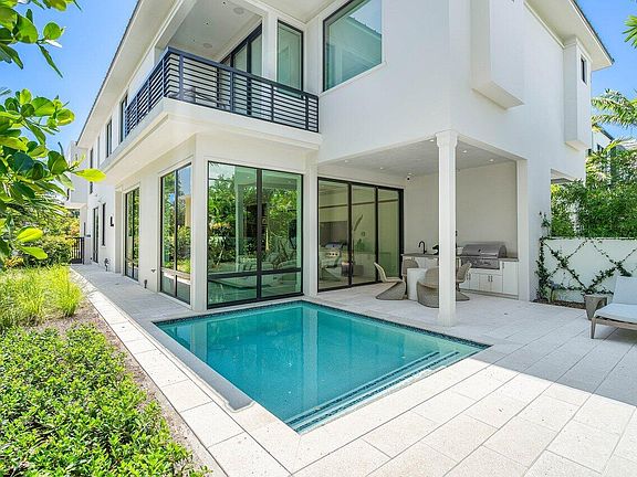 Less than a mile to the beach and a few blocks to Atlantic Ave, this 2024-built residence delivers a high-end Delray Beach lifestyle with the sophistication of modern new construction. It offers 4 bedrooms, 3 full baths upstairs and a half bath plus a flexible office/den on the main level. A chef-inspired kitchen with natural gas, Thermador appliances, and a wine bar opens to the spacious living area. Smart-home features include a Control4 system, motorized Lutron shades, impact glass, built-in speakers, and whole-home Wi-Fi. Triple sliders lead to the heated saltwater pool and outdoor kitchen. The primary suite offers a terrace, spa-style bath, and two walk-in closets. With 10'+ ceilings, hardwood floors, a 2-car garage, and EV charger, this is your refined luxury retreat.