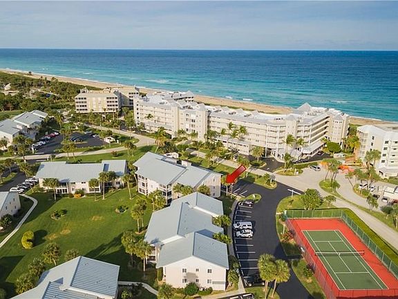 Enchanting ground floor condo was a recent contender for HGTV's Beachfront Bargain Hunt show! Enjoy a resort lifestyle with community beach walk directly across from the unit. Leave the sand and beach gear at the door as utility room is next to the entry. Kitchen is open to the living area with attractive cabinetry and spacious counter seating. Pocketing sliding doors open to a charming screened porch overlooking the courtyard, community pool in the distance and a long view of the impeccable resort. Master bath has a walk in shower and updated vanity. Front bedroom is opposite the hall bath with tub. Hot water heater 2019. AC replaced approx. 2014. Small to large pets are welcome. Owners can rent units for a 30 day minimum. Community pool, BBQ, tennis courts and beach access! Furnishings available.