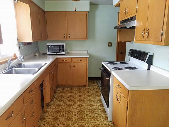 Neat and Complete! Whether your first house or downsizing, this home offers you 3 bedrooms, 1 bath, eat-in kitchen, and living room. This property has had nothing but tender loving care... One owner for many many years. Well cared for. A few simple cosmetic updates and this home will be ready for its new owner! Seller states hardwood floor under carpeting in living room. Bedrooms all have hardwood flooring. Full basement could provide additional living space. 1 car garage with cement pad parking for another. Extra large back yard for gardening and recreation. Located across the street from Ben Franklin Junior High. New 200 amp service just completed with underground cable.