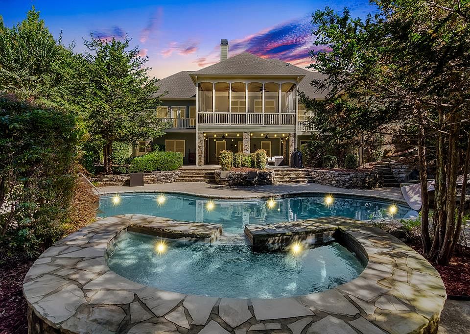 Welcome to your dream home nestled in the heart of Ellijay, just minutes from charming downtown and surrounded by the beauty of nearby orchards and the breathtaking North Georgia mountains. This expansive residence offers 5 bedrooms, 3 full baths, and 2 half baths, designed to accommodate both luxury living and everyday comfort. Step inside to discover a thoughtfully laid-out main level featuring a welcoming foyer, a classic library or office, an elegant formal dining room, and a beautifully upgraded kitchen complete with breakfast nook. The spacious living area showcases a striking rock fireplace that adds warmth and character to the home. Also on the main floor is a generously sized primary suite with a walk-in closet and a spa-inspired bathroom offering a double vanity, tiled walk-in shower, and a soaking tub for ultimate relaxation. You'll also love the oversized laundry room, conveniently located on the main level. This home has four garage bay and one is currently being used as a home gym! Upstairs, two large bedrooms share a Jack-and-Jill bathroom, plus there's a versatile room that can serve as a fifth bedroom, media space, hobby or homeschool room. Downstairs, a fully finished terrace level serves as a private in-law suite complete with its own bedroom, full bath, kitchenette, half bath, and a separate garage—ideal for multi-generational living or hosting guests. Step outside and unwind in your own backyard paradise. The saltwater pool, complete with rock waterfall, slide, and hot tub, sets the stage for endless fun. Enjoy outdoor dining and entertaining from the expansive screened-in porch or under the additional covered poolside area. Situated on all paved roads with easy access to town, this home offers the perfect balance of privacy and convenience. With space for up to four vehicles, room to grow, and mountain views greeting you from the front porch, this is a rare find!