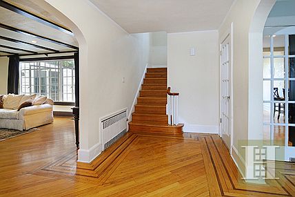 A taste of merry England in this mint condition Tudor home in prime location featuring a fully updated gourmet eat in kitchen w/stainless steel appliances, new master bathroom, spacious living room with beamed ceiling and leaded glass bookcases, hardwood floors with inlay, natural woodwork, both a Family Room and an office on the first floor and a finished basement with rec room. Central A/C, slate roof, private patio off the Family Room and more. Close to Forest Avenue Elementary School and the Jitney to the NYC train. A must see!