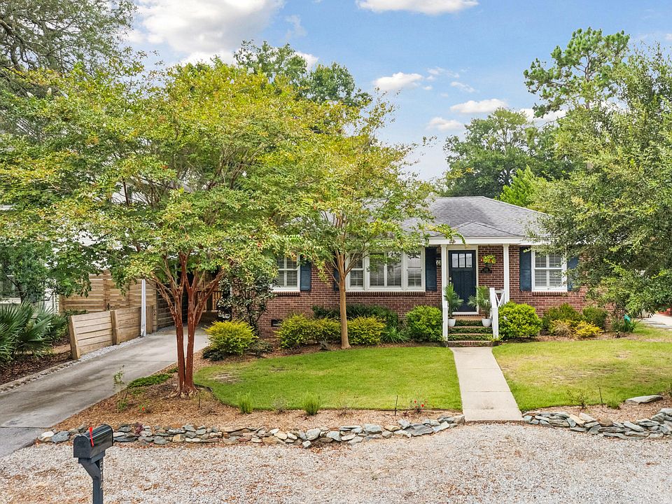 Set on an idyllic street in the desirable Old Village neighborhood, this updated brick ranch has so much to offer. 514 Ruby Drive has been extensively renovated by the current owners to include a new addition. Stepping into the home you will notice beautiful hardwood flooring, crown moulding and an abundance of natural light. The spacious sitting room area flows seamlessly into the formal dining room. Off the dining room, there is an area that connects to the kitchen featuring custom built-in storage, a drop zone and desk with convenient access to the carport and side yard. A laundry room with additional built-in storage can also be accessed from this area. The beautifully renovated kitchen showcases an oversized island perfect for barstool seating, stainless steel appliances and plenty of counterspace. An expansive family room adjacent to the kitchen boasts 9-foot+ ceilings. The primary bedroom addition has vaulted ceilings, plantation shutters, two walk-in closets and an en suite bathroom with a dual sink vanity and glass enclosed shower. A hallway off the family room leads to two additional guest bedrooms, a full bath and a secondary entrance to the laundry room. Notable exterior features include a partially covered deck, paver patio with outdoor fireplace, mature landscaping with irrigation system, a storage shed, newly installed outdoor shower and a side deck off the covered carport. The private backyard lives large and has the potential for adding a pool, a detached garage/ADU or extending the current footprint of the house. Enjoy living a short walk to Old Village restaurants, shopping, tennis courts, Pitt Street Bridge and Alhambra Park. This home is also conveniently located to the beaches of Sullivan's Island and Isle of Palms, downtown Charleston and Shem Creek. Come see this beautifully designed one-story home in one of the most sought-after locations in Mount Pleasant. The property is in a X flood zone and is walking distance to Mount Pleasant Academy.