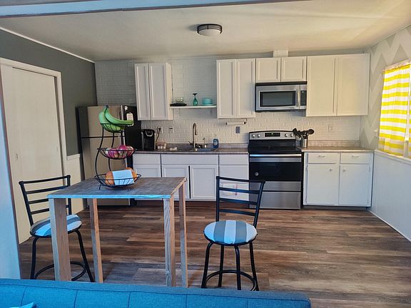 **Daily, Weekly, Month-to-Month, 6-month, and 36-month leases available. ** Stays longer than 28-days will pay the monthly rate of $1300. Air bed and breakfast rate applies otherwise: The Happy Hut This is a fully furnished duplex unit providing comfort and security. There's an electric fireplace, skylight, recessed lighting, ceiling fans, open concept, functional kitchen, stainless steel appliances, refurbished cabinets, tiled shower, beautiful vanity, closet systems, in-unit laundry, and assigned property parking. All utilities and WiFi are included. There is a doorbell camera and rear perimeter camera visibility available. This home is approximately 5-15 driving minutes from all things in Roswell: Shopping, groceries, dining, entertainment, softball, golfing, and self care. NOTE: This home is child friendly. But, no pets please. No smoking is permitted indoors. FLETC campuses are approximately 45 driving minutes away. **DETAILERS RECEIVE PRIORITY** Enjoy your extended stay! And don't forget to tell us what YOU think. No smoking allowed. Property management pays water, electric, and wifi. Parking is shared, but assigned off-street.