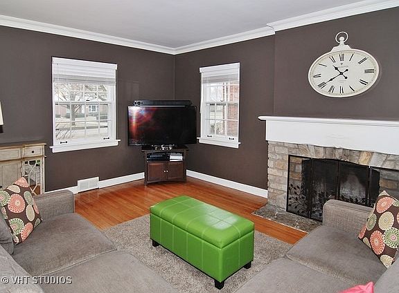 Charming 3 bedroom, 2 full bath, updated English Brick home with many original features such as arched entryways, fluted moldings/trim and stacked crown molding. The lovely living room offers a wood burning fireplace and built in book shelves. The dining room leads out through French doors to the 2 tiered cedar deck and landscaped back yard. The kitchen has all stainless appliances, granite counter tops and an adjoining cozy breakfast room. All the bedrooms have spacious proportions, and the Master has an over sized walk in closet. The large finished basement adds additional recreational space, plus a work room, and laundry area. Other features include newer AC and furnace (2010), hardwood floors though out, beautiful tile work, paver walkway and front porch, 2 car garage and is located on a quiet tree lined street in historic Riverside.