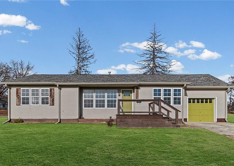 This nicely updated 3-bedroom ranch nestled in on a spacious corner lot is looking for its new owner! The bright and inviting floor plan offers functionality, perfect for everyday living. As you step into this home you will be greeted with a generous living room with newer flooring, custom stone fireplace, and lots of natural light let in by dual pane vinyl replacement windows throughout. The formal dining room gives you a place to host dinners with friends and family while the eat-in kitchen offers a bright and airy feel with modern white cabinets. The bathroom is outfitted with sleek and clean finishes. French doors lead you to the large concrete patio that overlooks the nearly 1-acre yard. Flooring allowance for 2 bedrooms to be considered upon receipt of acceptable offer.