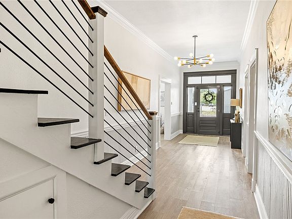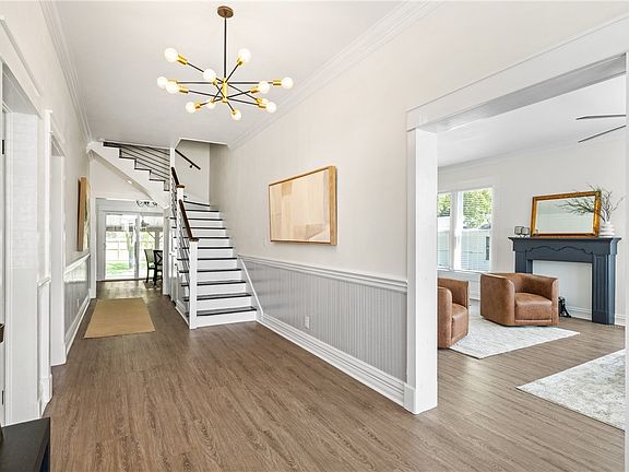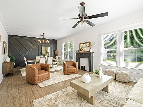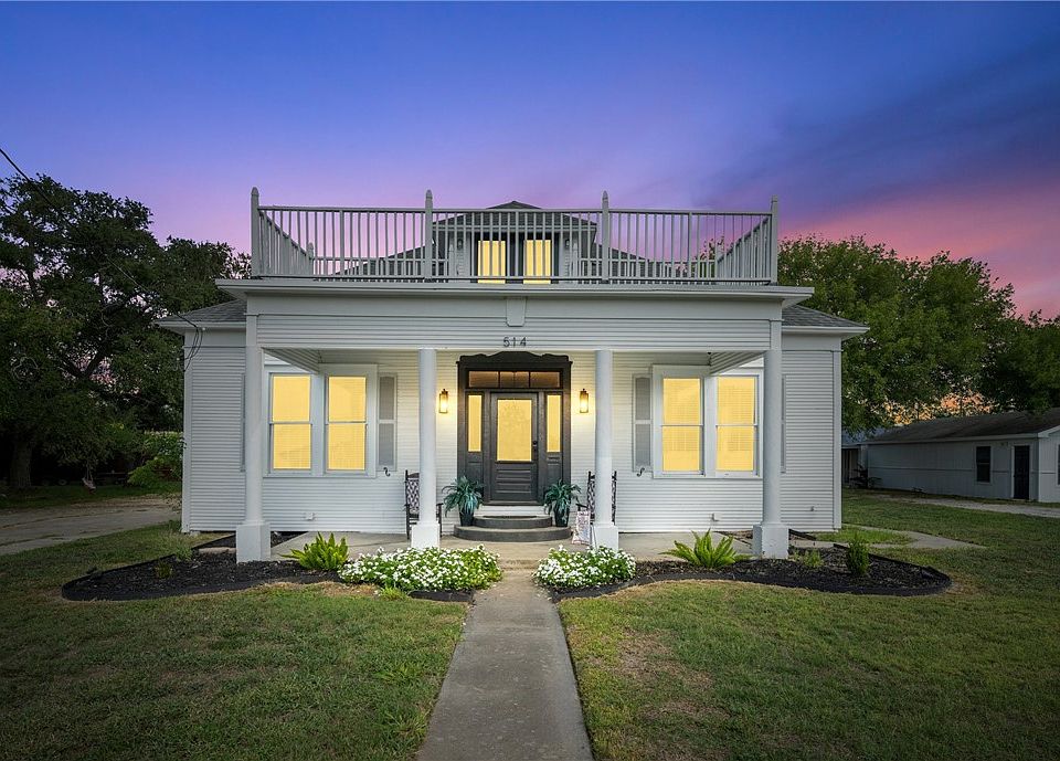 Welcome Home to 514 W 4th Street. Step into a timeless masterpiece where classic 1950s architecture meets a thoughtful, high-end modern transformation. This 3-bedroom, 2-bath residence spans 2,428 sq ft of refined craftsmanship, boasting luxury waterproof vinyl flooring, designer lighting, and curated finishes that bring warmth and elegance to every corner. From the moment you enter, the stunning foyer makes a statement, black-on-white contrast details, crown molding, and a reimagined staircase immediately set the tone for the sophistication carried throughout the home. The open-concept living and dining space blends original character with modern design, featuring a bold accent wall and a fireplace surround that serve as the room’s centerpiece. The kitchen, a true showpiece, was designed for both beauty and functionality, complete with custom cabinetry, brass hardware, quartz countertops, pot filler, and a striking backsplash that ties it all together. Every inch was thoughtfully crafted to feel both elevated and welcoming. Original details from this 1950s gem remain perfectly preserved, wavy-glass windows, crystal door knobs, and solid-core interior doors....reminders that this isn’t a flip, but a genuine restoration with heart and precision. Both bathrooms echo this same balance of vintage charm and modern luxury, showcasing gold fixtures, high end tile, and spa-inspired vanities. Upstairs, a private balcony terrace invites you to unwind with morning coffee or sunset views. Step outside and you’ll find a large covered patio with warm wood accents and dual ceiling fans, perfect for entertaining year-round. The spacious, fenced backyard offers room to relax, play, or expand.As a major bonus, an additional 800 sq ft detached structure, complete with plumbing, electrical, and its own full bathroom, offers endless possibilities, for a guest suite, ADU, home office, or income-producing rental. Come and make 514 W. 4th your next HOME today!