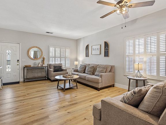 Nestled in Southwest Visalia on a quiet cul‑de‑sac lot, this two‑story residence captivates with its thoughtful updates and functional elegance. Step inside to find modern luxury vinyl plank flooring flowing seamlessly through the open living spaces, accented by abundant natural light. The formal living area features a cozy fireplace, while the secondary living space offers flexible options perfect for a media room, home office, or play area. A spacious three-car garage provides room for vehicles, storage, or hobby gear. The roof is finished in classic Spanish tile for added curb appeal and durability. Heating and cooling are handled by a brand new HVAC unit for seasonal comfort. Out back, you'll discover your personal retreat which includes a private pool with gunite construction, surrounded by towering palm trees and secured by a full brick wall that ensures no rear neighbors. You can host festive fall gatherings or enjoy quiet winter afternoons outdoors in this space. Just steps away from parks and everyday amenities, this home blends indoor comfort with seasonal charm. It's ready today just bring your vision.