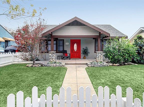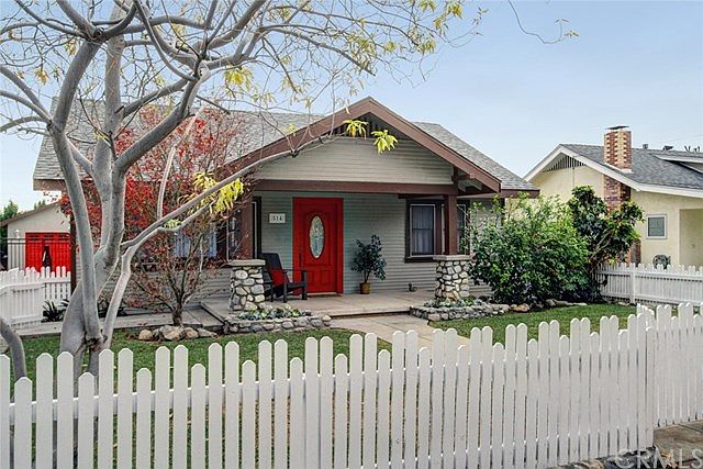 Welcome to this Charming Craftsman home located in close proximity to downtown Monrovia. A white picket fence enhances the curb appeal and invites you into the landscaped yard and covered front porch. As you enter the home, you will find hardwood floors, a living room with built-in book shelves, windows with craftsman style molding and lots of charm. Spacious kitchen features an eating area, ample counter space, refrigerator, and access to the side driveway. There are two bedrooms and two full baths. The formal dining room has picture molding and French doors that lead to the patio and back yard. The oversized two-car garage has been finished with cabinets, removable floor tiles, ample space for storage, and washer and dryer hook ups. Newer improvements to the property include a shed behind the garage, the backyard fencing, landscaping, a metal gate installed across the driveway that includes a pedestrian gate, too, front and back yard sprinklers, water heater, and attic access with a pull-down ladder. This wonderful property is priced to sell!