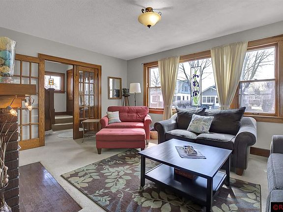One word here.. charm! This cutie is located in lower North Mankato within walking distance to park and school. Built in 1925, this home has original woodwork and doors throughout. Upstairs are 3 bedrooms with large closets/built-in bookcases and full bath with claw foot bath tub. Note the walk up attic through hallway door - for extra storage or finish for a bonus space! Nice sized kitchen with tile floor and back splash, desk area. Large windows with tons of natural light. Dining room with built-in corner hutch. Living room has french doors with gas fireplace, and carriage windows add more charm. Fully finished basement with knotty pine ceiling, extra storage, and a combo laundry room with 3/4 bath. Extra room currently used as an office, or possible as an extra bedroom with the addition of egress. Off the back of the home, there is smaller yard, with an extra large 2-1/2 stall garage. Move in ready & looking for it's new owner. Don't miss out on this one!