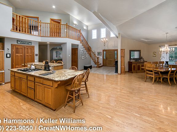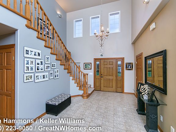 This gorgeous custom built home lies on 5 acres with a scenic pond in the backyard. You'll love the open floor plan with 9-ft ceilings, kitchen with island bar, dining room, living room, and family room all in the main living area. Other home features include a gas fireplace in the living room and master bedroom, radiant heated floors, central vac system, solid hemlock floors, large deck, and a covered wrap-around porch. Backyard has shed for storage & pump house with large tank for property maintenance.