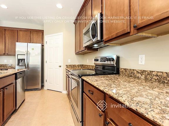 Home Features and Amenities: Air Conditioning, Fenced Yard, Garage, Granite Countertops, Kitchen Island, Long Lease Terms, Luxury Vinyl Plank, Patio, Pet Friendly, Recessed Lighting, Smart Home, Stainless Steel Appliances, Tile, W/D Hookups, and professionally managed by Invitation Homes.