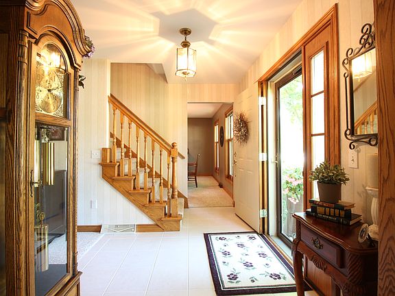 Quality, Quality, Quality! Built by Koetje Builders, this home Wows! 6 panel solid oak doors to every room in the house compliments the oak trim through out. Large living room with wood burning fireplace flows into the kitchen with Corian counter tops and stainless steel appliances. From the dining area, walk out into the massive sun room with vaulted ceilings overlooking the fenced in, landscaped backyard with lots of privacy. Large master suite is on the opposite side of the house from the rest of the bedrooms for extra privacy. The finished basement is a great place for entertaining with a bar and plenty of space to relax. Don't miss all the built in cabinetry. This double deep lot helps hold the 4 stall garage which is perfect for holding a boat, extra vehicles or workshop.