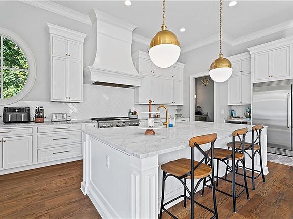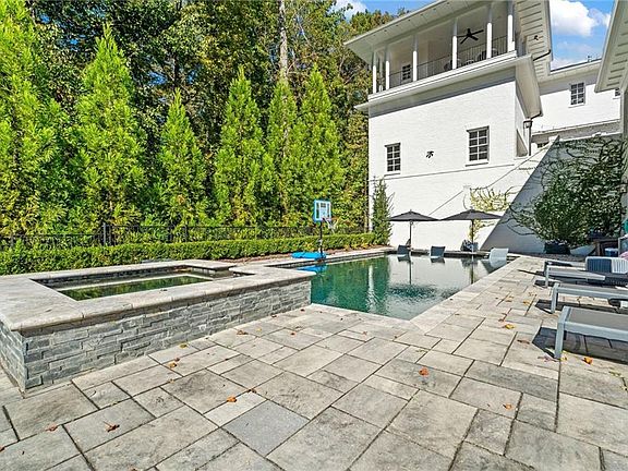 Welcome to this exquisite custom-built estate where sophistication and comfort come together seamlessly. From the moment you arrive under the elegant porte-cochere, the home’s stunning curb appeal and covered front porch with charming swings set the tone, perfect for relaxing on cool fall evenings. Step inside and discover an open, light-filled floor plan designed for both everyday living and grand entertaining. The chef’s kitchen is a true showstopper, featuring a top-of-the-line Monogram 6-eye gas range with griddle, dual dishwashers, and an Electrolux refrigerator and separate dedicated ice maker (yes, the good ice!). The kitchen flows effortlessly into the family room, creating the perfect gathering space, and also connects to the dining room through a stylish butler’s pantry, ideal for hosting dinner parties or holiday celebrations. A spacious walk-in pantry and large mudroom with built-in nooks for backpacks and shoes add thoughtful convenience. Off the family room, a grilling deck invites you to enjoy outdoor dining and entertaining. Upstairs, you’ll find five spacious bedroom suites, each offering privacy and comfort. The primary suite is a true retreat, featuring a spa-inspired bath with a soaking tub, floor-to-ceiling glass shower, and a private covered porch, the perfect spot to sip your morning coffee while overlooking the serene backyard. A loft or game room adds flexible space for fun or relaxation. The terrace level offers incredible versatility, complete with a dedicated gym, entertaining area, full bath, bedroom, and ample storage. We still haven’t talked about the cherry on top. Enjoy this backyard oasis complete with a Gunite pool and hot tub, a pool house w/ private bath and a massive play area. For the sports enthusiast, there’s even a batting cage!! Rounding out this exceptional property is a three-car garage, high ceilings throughout, and every feature today’s luxury buyer could dream of. This home truly has it all: luxury finishes, family-friendly function, and resort-style living, all in one unforgettable address.