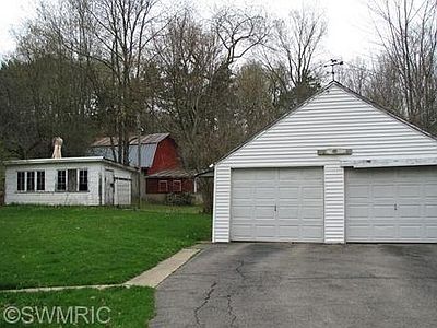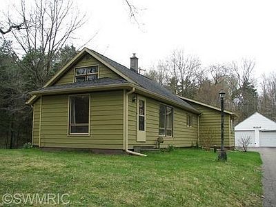 For details and more pictures, call listing Agent: Denise Atwood at (269) 488-5562. Enjoy country living in this well maintained and charming home. Setting on 2.5 acres this three bedroom, one bath home has a family room with gas log fireplace and lots of windows overlooking a covered patio. Spacious living room with newer maintenance free floor. Main floor master bedroom and main floor second bedroom. Upper level offers a third bedroom with built-in desk and drawers. Large main floor bath with laundry. Kitchen has lots of cupboards and eating area. Mudroom has access to basement offering lots of storage space. Peaceful country surrounding close to Kalamazoo.