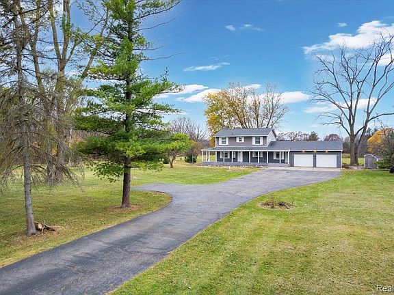 Welcome to your own private retreat on over 14 acres Flint! This spacious 5-bedroom Colonial offers over 2,000 square feet of living space surrounded by peaceful nature and a private pond. Enjoy a large family room with a cozy fireplace, updated kitchen appliances, and a versatile floor plan perfect for gatherings or quiet evenings in. Step outside to a covered porch and expansive deck overlooking over 14 acres of your land — ideal for entertaining or relaxing. The property also features a 2-car attached garage, above-ground pool, hot tub, and additional shed for storage. Conveniently located near Richfield and Belsay Roads with easy access to local amenities, yet offering the space and privacy you’ve been looking for. Please note washer appliance is excluded from the sale.