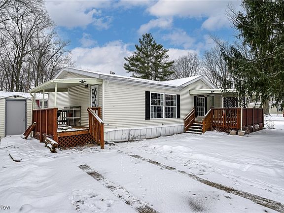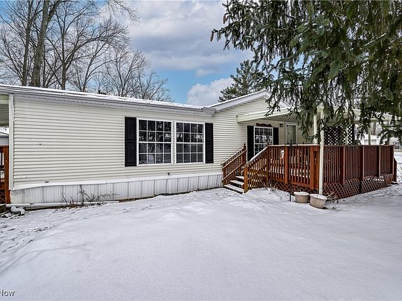 Welcome to this charming 3-bedroom, 2-bathroom mobile home located in the desirable Fair Acres Development of Ravenna. Step inside to a spacious living room with a wet bar, perfect for relaxing or entertaining. The large open concept kitchen features a cozy dinette area, pantry and comes complete with a new range and refrigerator for your convenience. Freshly updated in 2024, the home boasts brand new carpet and paint throughout, giving it a fresh feel. Enjoy your large back or front porch, offering a peaceful setting, an ideal spot for your morning coffee or summer evenings. The yard is also generously sized, offering plenty of space for outdoor activities. Don't miss the chance to make this lovely home yours!