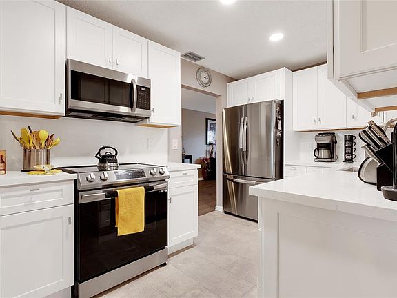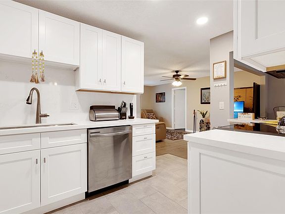 (55+ Community) Enjoy Cypress Lakes Golf & Lifestyle in this beautiful remodeled lake front 2/2 with 1 Car Garage, Family, & Den*Hurricane impact resistant windows & doors*New laminate wood flooring*Kitchen updated 2022 – In Kitchen Recessed lighting, Quartz Countertops, Stainless Steel Appliances Dishwasher, Deep sink with Nickle faucet, Side by side fridge with bottom freezer, Flat top stove, Nickle handles on white cabinetry, Kitchen appliances replaced 2022*9 Newer Ceiling fans*Screened patio with serene view of lake*Community Boasts Electronic Guard gate*Club House*Golf course*Theatre*Swimming Pool*Sauna*Hot tub*Putt Putt Golf*Tennis Courts*Pickle ball*Basketball*Shuffleboard*2 exercise rooms*Library*Maint fee includes cable TV & lawn maintenance front yard & back & sprinkler system*