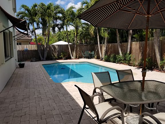 Beautiful two story 4 bedroom 3 bath home with large family room/office upstairs. Beautiful heated pool with large patio area and two car garage. Close to elementary, middle and high schools and shopping. Lots of upgrades including window treatments with tile floors downstairs and laminate wood floors upstairs. Open concept kitchen with extra cabinets and granite counter tops. Large Balcony. Crown molding in master bedroom with custom blinds. Ceiling fans in all bedrooms including family room. Accordion hurricane shutters. Fenced yard with wrought iron gates. NO HOA fees
