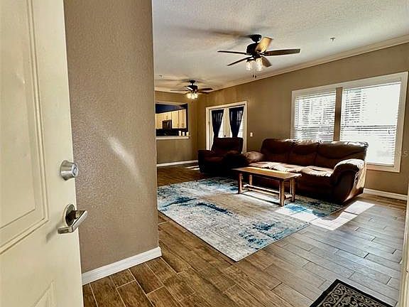 Live in the heart of Haile Village Center! This beautifully updated condo features wood-style tile floors, crown molding, high ceilings, and a private balcony overlooking charming brick-lined streets. The kitchen offers stainless steel appliances, solid surface countertops, and plenty of storage. Enjoy access to the community pool and gym, as well as walkable proximity to dining, boutique shopping, and community events. Located just minutes from UF, Shands, and local shopping. All furniture and appliances shown in the listing photos are included, offering a partially furnished home.