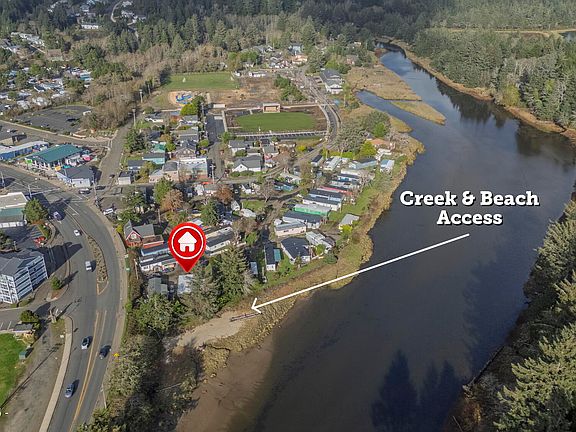 This charming 2-bedroom, 2-bath home features a remodeled kitchen, wood stove, custom blinds, washer/dryer, and a fenced backyard for added privacy. Major upgrades include a 2020 roof, 2023 porch, 2025 water heater, and new garbage disposal, giving you peace of mind for years to come. Walk to Mo's, historic Taft, Pelican Brewery, Pines Dine, and more or simply spend your days lounging on your own stretch of sandy creekside beach. This secluded setting offers the ideal blend of nature, comfort, and walkability.