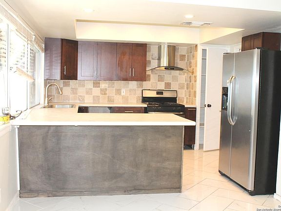 Charming move-in-ready home! This updated single-story offers 3 beds, 2 baths, and a bright 1,264 sq ft open layout with fresh interior paint and exterior paint, stylish kitchen with stainless gas range & fridge, modern fixtures, and a spacious covered patio. Convenient NE location near Loop 410/I-35, JBSA-Fort Sam, H-E-B, Walmart, The Forum & IKEA. Enjoy nearby parks, trails, and golf just minutes away.