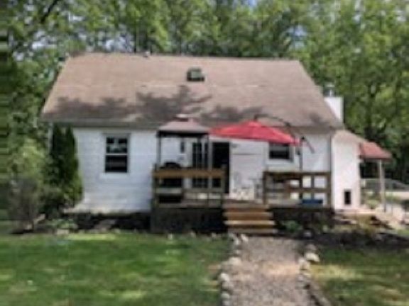 Sitting on a quiet road, in a park like setting on an acre of land in, this home is ready to move into. The deck off kitchen overlooks the large back yard with plenty of room for dirt bikes, pool, whatever you want. Oversized garage (720 sq ft), plus a 14x16 outbldg for extra storage. In the home is an updated oak kitchen with eating area and slider to deck, woodstove in LR with new carpet, laminate flooring thru out most of remainder of main level, 2 bdrms (wardrobe in basement that can be moved upstairs for closet in the bdrm w/out one), full updated bath. Extra wide staircase going upstairs for ease in moving furniture, Large landing room large master, and full bath with walk in closet for extra closet space. room measurements upstairs do not include dormer areas. Basement has egress window, addtl finished room, utility room, laundry room, and ready to finish (already framed in) main room at base of stairs. This home has been lovingly cared and maintained. Seller is offering a $1000. flooring allowance for upstairs with good offer.